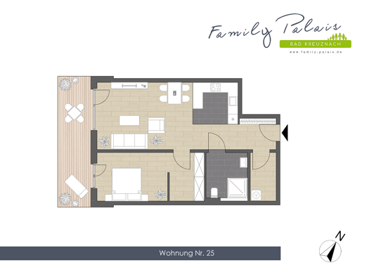 ------------------------------------ Wohnungshighlights: ------------------------------------- - 2 Zimmer - Erdgeschoss & Garten - Aufzug - XL-Balkon - Abstellraum - Schlafzimmer mit Ankleide - Ideal für junge Paare & Senioren ------------------------------------- Family Palais Bad Kreuznach: ------------------------------------- - 32 gehobene Neubau-Eigentumswohnungen - Energieeffizienz A+ - Massivbauweise mit Wärmedämmung - Aufzug über alle Etagen - Moderne Heizenergie durch Wärmepump...