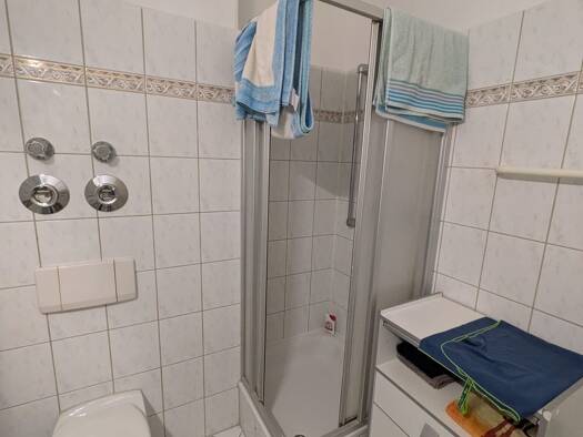 Komplett möblierte 1 ZW nähe Westbahnhof (5 Minuten zu Fuß) und Marktplatz. Das Mehrfamilienhaus wird von unserem Hausmeister gepflegt und gereinigt. Mit dem Aufzug gelangt man ohne Stufen zur Wohnung. Im Haus steht ein kostenloser Fahrradraum zur Verfügung. Waschmaschinen und Trockner können gegen Gebühr genutzt werden, ebenso eine Sauna. Raumaufteilung Durch einen neu gefiesten Flur gelangt man in das lichtdurchflutete Zimmer, das mit schönem neu verlegtem Laminatboden ausgestattet ist. In de...