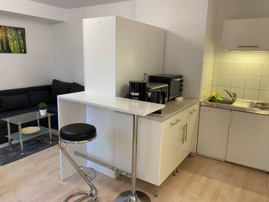 Wir vermieten zur Zwischenmiete ab sofort ein voll ausgestattetes Ferienapartment im 2. Stock (Aufzug vorhanden, barrierefreier Eingang) mit Wohn-/ Esszimmer und offenem Schlafbereich mit einem 1,80 ...