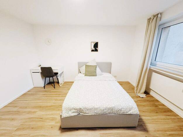 Das WG-Zimmer ist voll möbliert & sofort bezugsfrei. Die WG ist sehr ruhig & daher sehr gut für Arbeitnehmer & Pendler geeignet. Die Lage ist sehr gut an Einkaufsmöglichkeiten oder dem ÖPNV gelegen.