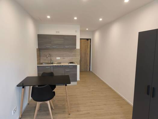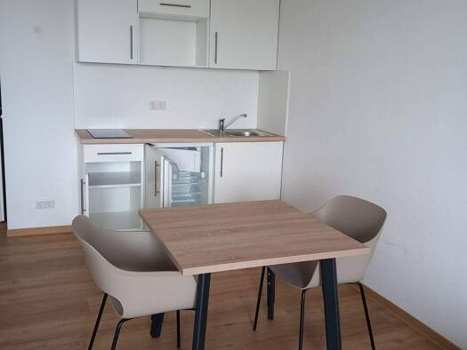 Das Apartment hat Fußbodenheizung, Vinyl-Designboden, ein modernes und großzügiges Duschbad und ist voll möbliert. Eine Küchenzeile mit 2 Ceran-Kochfeldern, Kühlschrank mit Gefrierfach, Spüle und Sta...
