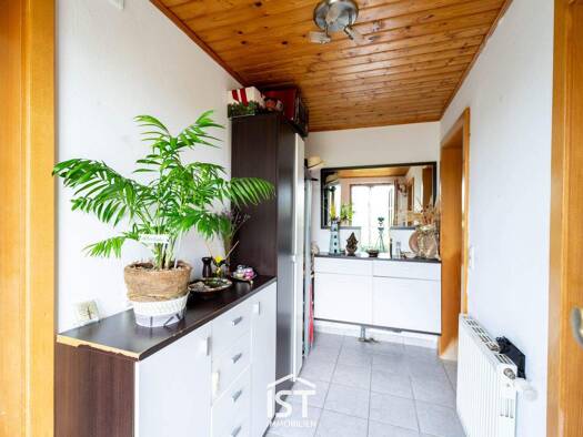 Die Wohnung zeichnet sich durch ihre großzügige und gut durchdachte Raumaufteilung aus. Das Wohnzimmer besticht durch hohe Decken mit sichtbaren Holzbalken, die dem Raum einen sehr gemütlichen Flair ...