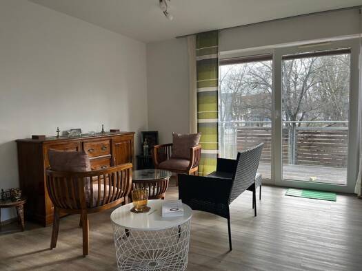 +++++++ Dieses Objekt kann nur möbliert angemietet werden +++++++ Diese modernisierte und vollständig möblierte Wohnung befindet sich im Augsburger Stadtteil Hammerschmiede und überzeugt durch eine hochwertige Ausstattung. Vom hellen Eingangsbereich aus gelangen Sie in den offen gestalteten Wohn-, Ess- und Schlafbereich. Dieser ist stilvoll eingerichtet und verfügt über eine komfortable Couch, einen Smart-TV sowie einen Esstisch mit Sitzgelegenheiten für vier Personen. Das großzügige Doppelbett...