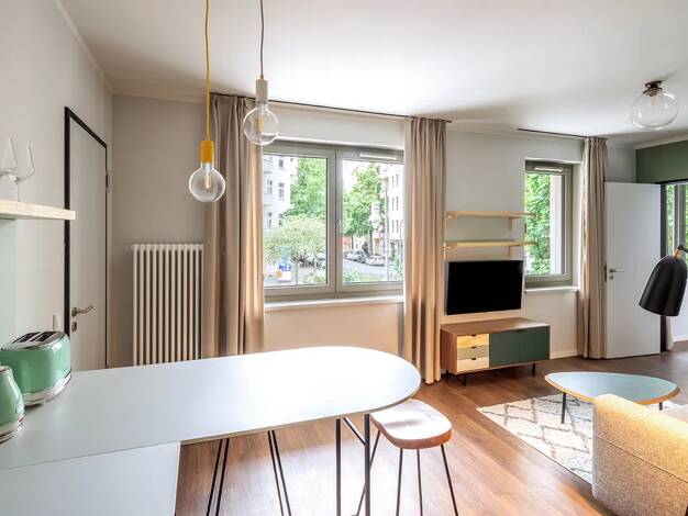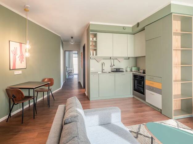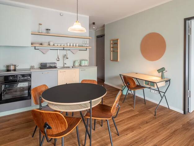 Das Urban Living Tempelhof ist eine moderne Apartmentanlage mit verschiedenen Apartmenttypen sowie großzügigen Gemeinschaftsflächen in Berlin Neukölln. 180 x Komfort-Apartments (21 - 27 m²) 19 x Komfort L-Apartments (26 - 32 m²) 11 x Komfort XL-Apartments (33 - 38 m²) 10 x Suite-Apartments (36 m²) 10 x Penthouse-Apartments (37 - 51 m²) 3 x Penthouse XL-Apartments (62 - 66 m²) Unsere pauschalen Nebenkosten beinhalten: Wasser, Warmwasser, Heizung, Strom, Community Manager, Facility Manager, Winte...