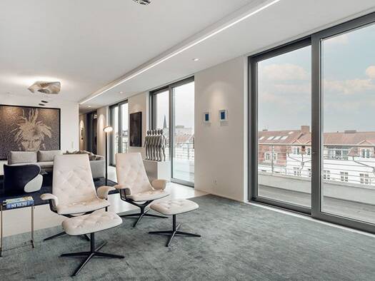Dieses Penthouse erstreckt sich über das fünfte und sechste Obergeschoss und bietet mit insgesamt ca. 563 Quadratmetern ein exklusives Wohnerlebnis mit hochwertiger Ausstattung. Die Terrassen und Bal...