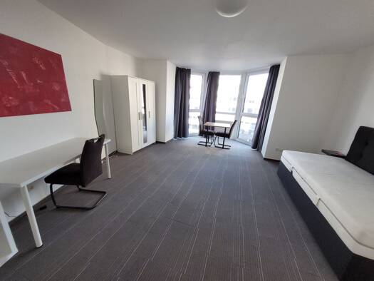 Dieses modern möblierte 1‑Zimmer‑Apartment im 6. Obergeschoss bietet eine helle, freundliche Wohnatmosphäre und einen wunderschönen Blick ins Grüne. Das Gebäude verfügt über einen neuen Fahrstuhl (Baujahr 2025) und ist sehr gepflegt. Ideal für Singles, Pendler oder Studierende, die Wert auf Komfort und eine ruhige Lage legen. Ausstattung - Voll möbliert (Bett, Schrank, Tisch, Stühle, Sofa etc.) - Einbauküche mit allen wichtigen Geräten - Modernes Badezimmer mit Dusche - Großes Fenster mit Weitb...