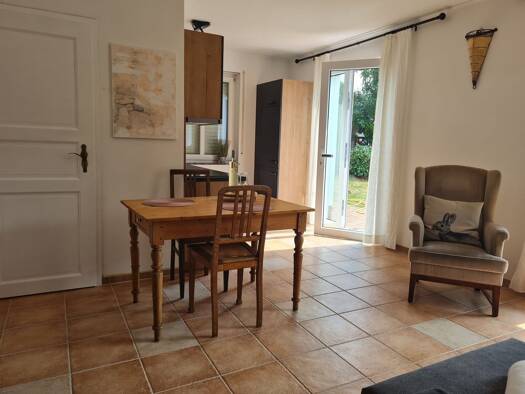 Es handelt sich um eine sehr hoch- und neuwertige Wohnung (55 m2 große Ferienwohnung für bis zu 2 Personen inkl. Terrasse). Hier finden Sie Ruhe und Erholung auf dem Land. Das ruhig am Ende einer Sac...