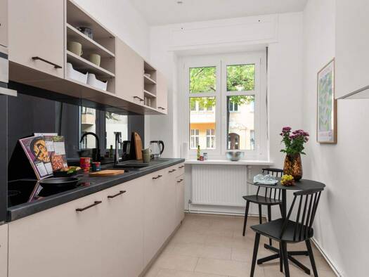 Die voll ausgestattete, schöne 2-Zimmer-Wohnung ist eine perfekte Wahl für alle, die ein privates Zuhause auf Zeit im Herzen Berlins suchen. Mit einer Kernsanierung und einer hochwertigen Ausstattung ist das Apartment komplett möbliert und bietet ein komfortables und stilvolles Wohnen in einem der angesagtesten Viertel der Stadt - Neukölln. Beim Betreten der Wohnung finden Sie einen eleganten Schuhschrank mit Ablagefläche und einem Spiegel vor. Das langgezogene Badezimmer mit einem Fenster und ...