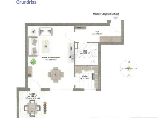 Objektbeschreibung Helle, modernisierte 1-Zimmer-Wohnung (2. OG mit Aufzug) in gepflegtem Haus von 1973. Große Fensterfront, sonniger Balkon mit Blick ins Grüne. Komplett möbliert, modernes Wohnambie...