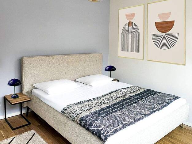 Objektbeschreibung Diese geschmackvoll eingerichtete 1-Zimmer-Wohnung bietet alles, was Sie für ein komfortables Wohnen benötigen. Ein komfortables Doppelbett lädt zum Träumen ein. Ein großer Kleiderschrank bietet ausreichend Stauraum für Ihre Kleidung und persönlichen Gegenstände. Die separate Küche ist voll ausgestattet mit Herd, Kühlschrank, Mikrowelle, und allen notwendigen Kochutensilien. Hier können Sie Ihre Lieblingsgerichte zubereiten und gemütlich am Esstisch genießen. Das moderne Bade...