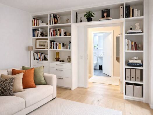 Diese stilvoll modernisierte Wohnung (ca. 80 m²) liegt in einem Anbau eines Mehrfamilienhauses von 1961 und ist ideal für Singles, Paare oder Pendler. Der helle Wohn- und Essbereich mit hochwertigen Möbeln und offener Küche bietet ein großzügiges Raumgefühl. Schlafzimmer und Bad sind modern und komfortabel gestaltet - inklusive Fußbodenheizung und Tageslichtdusche. Eine Belüftungsanlage sorgt für frische Luft, der Balkon lädt zum Entspannen ein. Zusätzlichen Stauraum bietet ein Gerätehaus vor d...