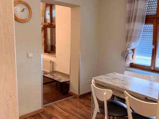 Helles, freundliches und großzügig geschnittenes Zimmer mit ca. 20 m2. 2025 neu hergerichtet und möbliert: Schrank, Sofabett (mit Bettkasten), Couchtischchen; elektr. höhenverstellbarer Schreibtisch, höhenverstellbarer Schreibtischstuhl, Rollcontainer; Regal, dimmbares Licht, WLAN, u.s.w.. 1 Dusche-/WC- Einheit im EG, d.h. zwei 2 WG-Zimmer teilen sich eine gemeinsame Dusche / WC; gemeinsame Küche mit Zugang zu Terrasse und Garten; voll ausgestattet: RGB/LED-Lampe, Spülmaschine, Herd (Ceranfläch...