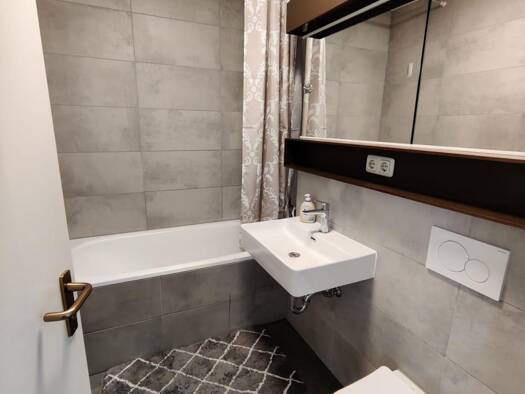 Hier bringen Sie nur Ihren Koffer mit – alles andere stellen wir Ihnen zur Verfügung: Luxus-Appartment mit hochwertiger und vollständiger Möblierung und 140*200 cm Boxspring-Bett für 1 - 2 Personen. Voll ausgestattete Top-Einbauküche mit Spülmaschine, Geschirr, Edelstahl Töpfen und Pfannen und allem sonstigen SchnickSchnack. Premium-Wellness-Bad mit bodengleicher 90*90 Dusche und Fussbodenheizung, zusätzlicher Handtuchheizkörper und Shampoo-Nische mit Light-Spot. Superschnelles WLAN. Waschmasch...