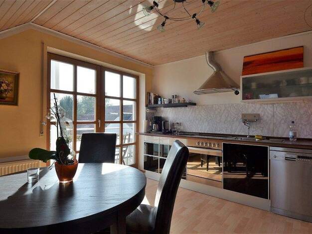 Im Denkmalgeschützten 3 Familienhaus befindet sich die Wohnung im 2.stock. Die Wohnung ist hell und praktisch eingerichtet. Die schreinereinbauküche ist 4 Jahre alt. Das große Badezimmer verfügt über eine Glasflächen und eine große kommode. Das Wohnzimmer wurde mit Eichedielen ausgelegt,die ein super Raumklima bieten. Alle Türen sind aus Glas . Im Dachgeschoss ist das Doppelbett untergebracht, sowie ein kleines begehbares Ankleidezimmer.