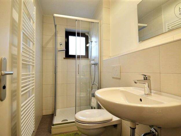 Das im Jahr 2018 errichtete Studenten-Wohnhaus ist hochwertig ausgestattet. Die Einrichtung lässt keine Wünsche offen: Die besteht aus einer breiten bequemen Schlafcouch, einer vollausgestatteten Einbauküche mit angesetztem Essbereich, einem Schreibtisch mit großer Arbeitsfläche und einem formschönen Kleiderschrank. Zur Wohnung gehören ein helles Bad mit bodengleicher Dusche sowie ein kleines Kellerabteil. Energiesparende Luft-Wasser-Wärmepumpe, Schallschutzkunststofffenster mit elektrischen Ro...