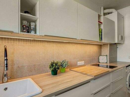Sie betrachten ein helles, lichtdurchflutetes Apartment in ruhiger Lage mit Highspeed-Internetanschluss, ausklappbarem modernem Sofabett und uneingeschränktem Blick ins Grüne vom großen Balkon. Geleg...