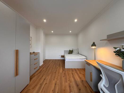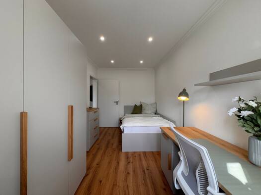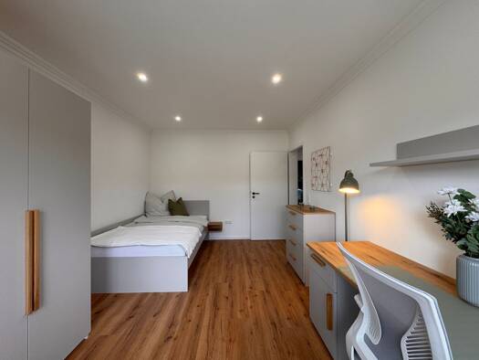 Dieses attraktive, möblierte WG-Zimmer in einer gepflegten 3er-Wohngemeinschaft in München bietet ein angenehmes Wohnumfeld für Studierende, Berufseinsteiger oder Young Professionals, die Wert auf Komfort, Funktionalität und ein ruhiges Miteinander legen. Das Zimmer ist hell, freundlich und vollständig möbliert. Zur Ausstattung gehören eine komfortable Bettcouch, ein Schreibtisch mit ausreichend Arbeitsfläche und ein geräumiger Kleiderschrank. Somit sind sowohl Erholung als auch konzentriertes ...