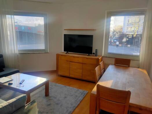 Ausstattung Moderne Möblierung, Holzlaminatboden, vollausgestattete moderne Alno Küche mit Neff Einbaugeräten, Cerankochfeld, Backofen, Spülmaschine und Gefrier- und Kühlschrank, Kaffeemaschine, Wasserkocher, Töpfe, Teller, Tassen, Besteck und Gläsern. Badezimmer mit Dusche inkl. Glasduschkabine , Bosch Waschmaschine und Siemens Wäschetrockner und einem Aufbewahrungsschrank mit zwei Türen. Wohnzimmer mit Multimedia Großbild TV 50 zoll Ultra HD, WLAN und Internetanschluss. Massiver Esstisch, Stü...