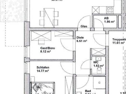 Diese kleine Einliegerwohnung befindet sich in einem Einfamilienhaus und ist nur für eine Einzelperson geeignet. Ideal für Wochenendfahrer. Die Energiekosten werden durch neueste Technik, Wärmepumpe und kontrollierte Wohnraumlüftung sehr gering gehalten. Die architektonische Gestaltung dieser optimal geschnittenen 1-Zimmer-Wohnung stellt sich als ein echtes Raumwunder vor: 1 eigener Eingang 1 kleiner Abstellraum für Waschmaschine u.a. 1 Miniflur für Garderobe 1 Duschbad 1 Abstellraum neben Küch...