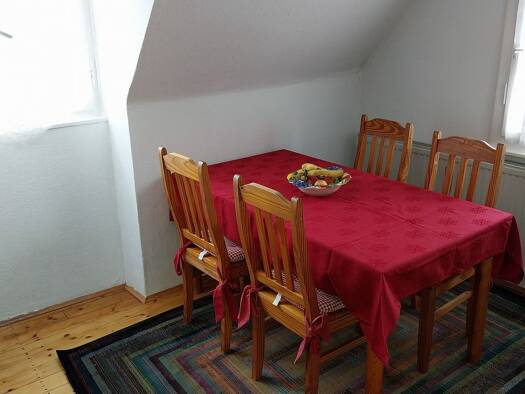 Wohnung voll ausgestattet mit Küche, Dusche, Spiegelschrank, Unterschrank, Flurschrank, Schuhschrank, Bett 140x200, Couch, kleine Anrichte, Esstisch, 3 Stühle, Balkon mit Sonnenschirm 2 Stühlen, Tisch, Kellerabteil, Fahrradkeller,