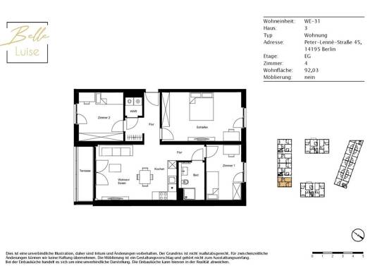 Terrassenwohnung zur Miete 1.500 € 3 Zimmer 88 m² Geschoss EG/4 frei ab sofort Lichterfelde Berlin 14167