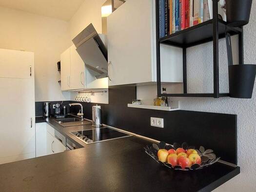 Möbliertes Apartment in sehr gepflegtem Gebäude einschließlich Pantryküche. Per Aufzug gelangen Sie bequem zum Apartment wie auch in die Tiefgarage. Das Gebäude verfügt über einen Raum mit 2 Waschmaschinen und einem Trockner. Das Apartment wird raufasertapeziert und weiß gestrichen übergeben.