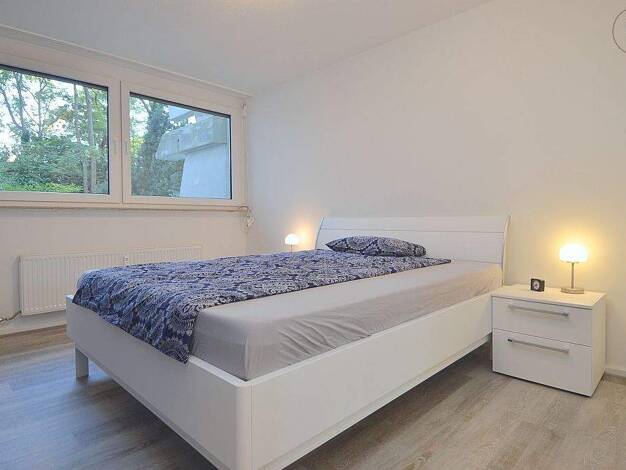 +++++++ Dieses Objekt kann nur möbliert angemietet werden +++++++ Alle Geschäfte des täglichen Bedarfs und die öffentlichen Verkehrsmittel befinden sich im unmittelbaren Umkreis. Trotz der ruhigen und idyllischen Umgebung bietet die Lage der Wohnung eine optimale Anbindung zur Autobahn A61. Das Wohn- und Esszimmer ist mit zwei Sofas, einem Esstisch mit vier Stühlen, zwei Kommoden und einem Sideboard mit Flatscreen-TV eingerichtet. Die große, offene Wohnküche mit Geschirrspüler ist voll ausgesta...