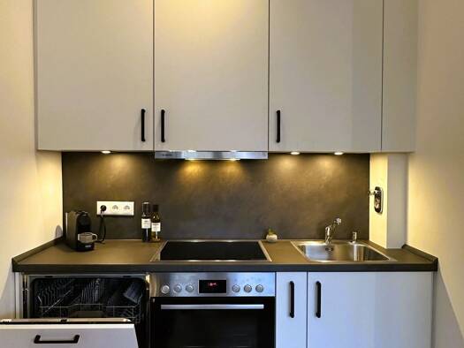 Ankommen und hochwertig wohnen. Luxussanierte 1-Zimmer-Wohnung mit hochwertiger Möblierung, kompletter Ausstattung und 2 Terrassen lädt zum Wohlfühlen ein.
