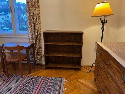 Das Zimmer mit 21qm befindet sich im ersten Stock eines gemütlichen Einfamilienhauses mit Garten in einem ruhigen Wohnviertel in Salzburg. Das Badezimmer im gleichen Stockwerk mit Badewanne und Toile...