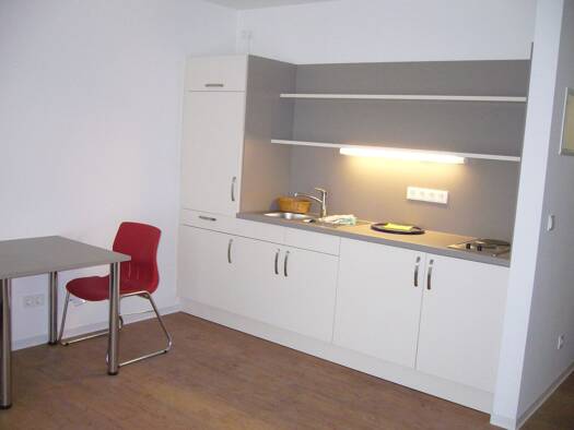 Im 2022 generalsanierten Wohn- und Geschäftshaus entstanden acht neue qualitätsvolle Mikroapartments, die vollständig möbliert vermietet werden. Ein Stellplatz kann bei Bedarf mit angemietet werden. Die Nutzung einer gemeinschaftlichen Terrasse ist möglich. Die Apartments sind voll und hochwertig ausgestattet mit Bett, Nachttisch, Kleiderschrank, Schreib-/Esstisch, Beleuchtung, Einbauküche (inkl. Töpfe, Geschirr, Besteck,...).