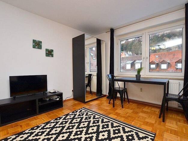 +++++++ Dieses Objekt kann nur möbliert angemietet werden +++++++ Hell und gemütlich möblierte 1-Zimmerwohnung direkt an der Alten Mainbrücke Die ca. 31m² große Wohnung, welche mit Parkettboden ausgelegt ist, befindet sch im 2.Obergeschoss eines Mehrfamilienhauses. Der moderne Schlaf- und Wohnraum ist mit einem 1,40m breiten Bett, Kleiderschrank, Couch mit Couchtisch, Regal mit TV und einem kleinen Esstisch für zwei Personen eingerichtet. Separat befindet sich nebenan eine Einbauküche, welche m...