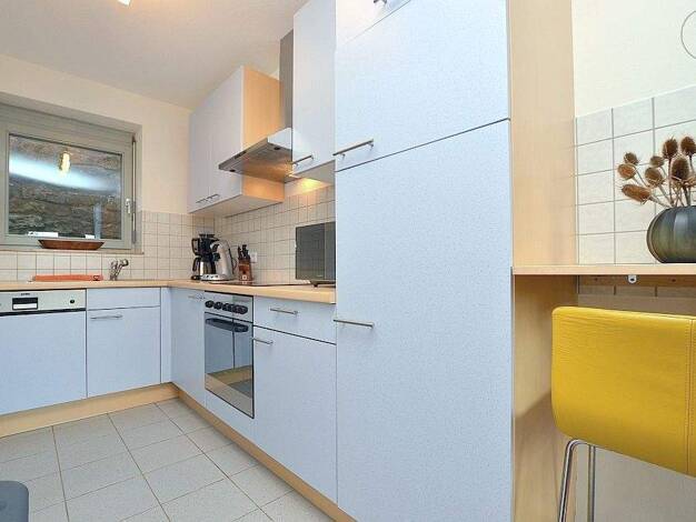 +++++++ Dieses Objekt kann nur möbliert angemietet werden +++++++ Stilvoll und freundlich möblierte 2-Zimmerwohnung in Rimpar mit Wlan Die ca. 65m² große Wohnung, welche mit Laminatboden ausgelegt ist, befindet sich im 1. Obergeschoss eines Einfamilienhauses. Das Wohnzimmer ist mit einer Couch mit Sessel, Sideboard mit TV und Einbauschränken eingerichtet. Von hier aus gelangt man auf die gemütliche Loggia. In der Küche befindet sich ein Essplatz für vier Personen, ein Regal sowie die Einbauküch...