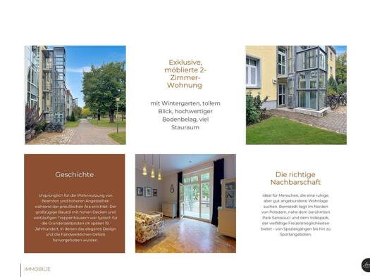 Möblierte 2-Zimmer-Wohnung in Potsdam mit Tiefgaragenstellplatz Diese stilvolle, vollmöblierte 2-Zimmer-Wohnung befindet sich in der Kirchallee 174 A im charmanten Stadtteil Bornstedt in Potsdam. Mit...