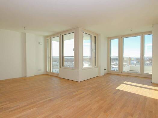 Auf ca. 82,65 m² präsentiert sich diese großzügige 2-Zimmer-Wohnung im 9. Obergeschoss. Der offene Wohn-Essbereich mit bemerkenswerter Fläche (ca. 51,46 m²), bildet das kommunikative Zentrum und biet...