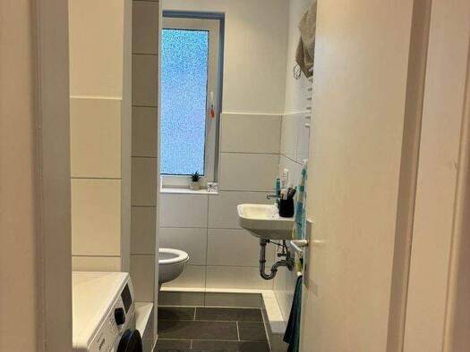 Die angebotene Wohnung liegt in einer ruhigen Seitenstraße eines Mehrfamilienhauses. Die Einbauküche ist mit Ober- und Unterschränken sowie einem Cerankochfeld und einer Spüle ausgestattet. Das Badezimmer verfügt über ein Duschbad sowie einem Fenster. Ein Stellplatz in der Nähe kann optional angemietet werden.