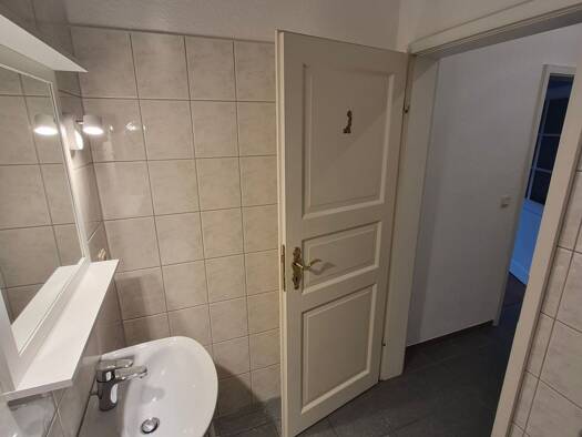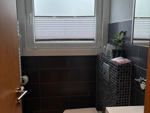 Sehr hübsche Wohnung im ersten OG mit Parkplatz direkt vor der Tür. Alles mit Fußbodenheizung und Wandheizung ausgestattet. Viel Licht Durchflutung. Sehr ruhig und trotzdem nur 100 Meter zum Einkaufz...