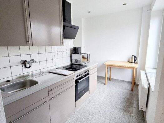 Die geräumige 3 Zimmer-Wohnung befindet sich in einem Wohn-Geschäftshaus in zentraler Lage im 1. Obergeschoss. Es gibt eine große Dachterrasse. Die Küche wird ohne Einbauküche vermietet. Das Bad ist ...