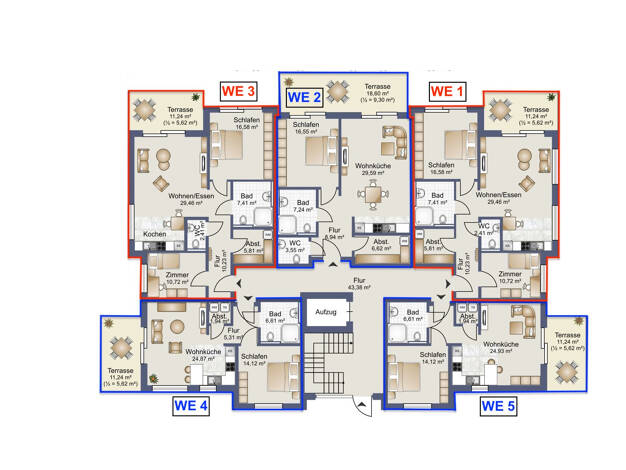 Highlight in Esterfeld: - Einbauküche mit Kochinsel, 3 Schlafzimmer - Aufzug, Luft-Wärme-Pumpe, Fußbodenheizung - überdachte Dachterrasse, PKW-Stellplatz, Fahrradschuppen - provisionsfrei für den Mie...