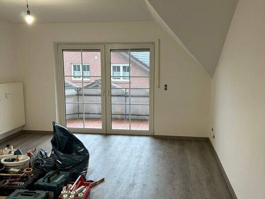 Diese wunderschöne 5-Zimmer-Maisonettewohnung befindet sich im 1. Obergeschoss / Dachgeschoss in einem Mehrfamilienwohnhaus in ruhiger Lage in einer Kleinsiedlung auf dem Lande in Eggermühlen / Bockr...