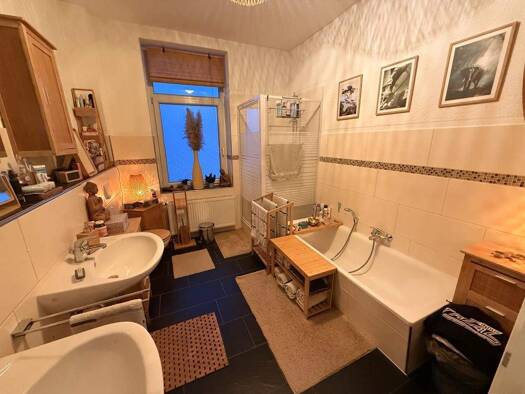 Die 3-Zimmer-Erdgeschosswohnung befindet sich in einem liebevoll modernisierten Fachwerkhaus mit historischem Charme. Helle Räume, eine durchdachte Raumaufteilung und stilvolle Details schaffen ein b...