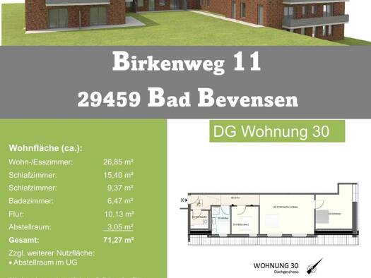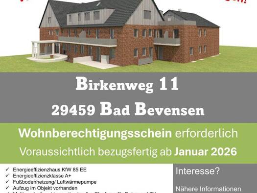 Wohnung zur Miete nur mit Wohnberechtigungsschein 427 € 3 Zimmer 76,3 m² EG frei ab 01.01.2026 Birkenweg 11 Bad Bevensen 29549