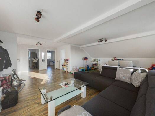 Diese helle und geräumige Dachgeschosswohnung in einem gepflegten Mehrfamilienhaus bietet eine ideale Wohnatmosphäre. Die Räumlichkeiten: Wohnzimmer: Großes, lichtdurchflutetes Wohnzimmer mit genügen...