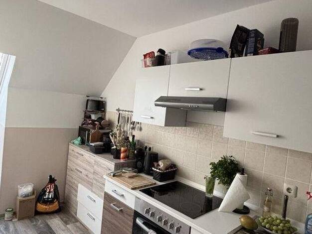 Zur Vermietung steht eine modernisierte Dachgeschosswohnung mit einem offenen und lichtdurchfluteten Raumkonzept. Der Wohn- und Essbereich ist großzügig geschnitten und bietet ein angenehmes Wohngefü...