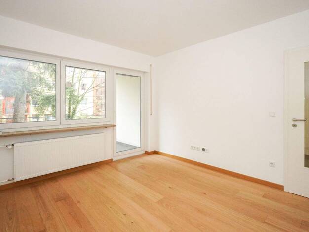 Diese großzügig geschnittene 2-Zimmer-Wohnung befindet sich im Erdgeschoss eines ruhigen Wohnhauses mit insgesamt zehn Mietparteien. Sie beseht aus zwei Zimmern, Küche mit Speisekammer, einem Flur mi...