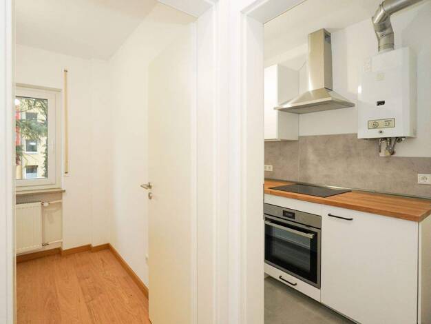 Die Wohnung befindet sich im 3. Obergeschoss eines Hauses mit 11 Wohneinheiten und einer Gewerbeeinheit. Sie besteht aus zwei gut geschnittenen Zimmern, Kochnische, Flur, WC und modernem Badezimmer .