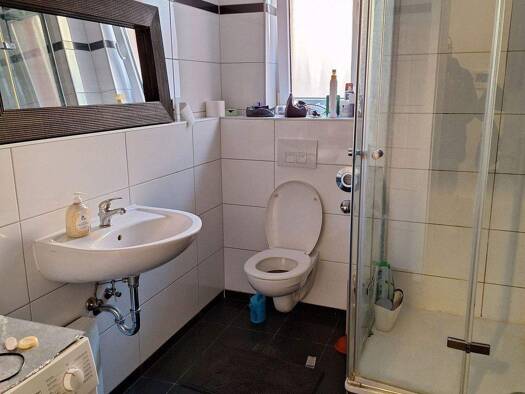 Objektbeschreibung 2,5-Zimmer-Wohnung im 4.OG ohne Aufzug. Die Einbauküche inkl. Kühlschrank, Waschmaschine, Spülmaschine und Herd kann, wenn gewünscht, von den Vormietern gegen 450€ abgelöst werden....