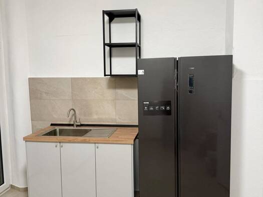 Großes Wohnzimmer mit offenem Durchgang zur Küche. Großes Schlafzimmer. Dusche mit Glaskabine, Waschbecken, WC, elektronischen Durchlauferhitzer. Alle Jalousien sind elektrisch bedienbar. Heizung mit Elektro-Marmorplatten. Messung über separaten Sondertarifzähler.
