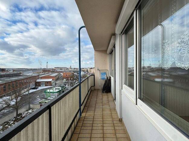 Die Wohnung hat einen Grundriss bei dem alle Räume vom Flur aus begehbar sind. Tageslichtbad, Einbauküche, separates WC, Gasetagenheizung, Fliesen und Laminat. 4. Stock, kein Aufzug, kein Balkon. Kal...