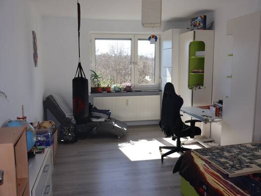 Diese helle und gut geschnittene 3-Zimmer-Wohnung befindet sich im 9. Obergeschoss eines gepflegten Mehrfamilienhauses und ist über einen Aufzug erreichbar. Durch die erhöhte Lage genießen Sie einen sehr schönen Ausblick. Das Herzstück der Wohnung ist der helle Wohn- und Essbereich mit direktem Zugang zum Balkon, welcher mit einer Markise ausgestattet ist. Neben dem Wohnraum verfügt die Wohnung über ein Schlafzimmer sowie ein weiteres Zimmer, das sich ideal als Kinder-, Arbeits- oder Gästezimme...