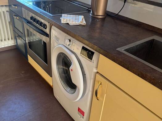 Objektbeschreibung 2,5-Zimmer-Wohnung im 4.OG ohne Aufzug. Die Einbauküche inkl. Kühlschrank, Waschmaschine, Spülmaschine und Herd kann, wenn gewünscht, von den Vormietern gegen 450€ abgelöst werden....